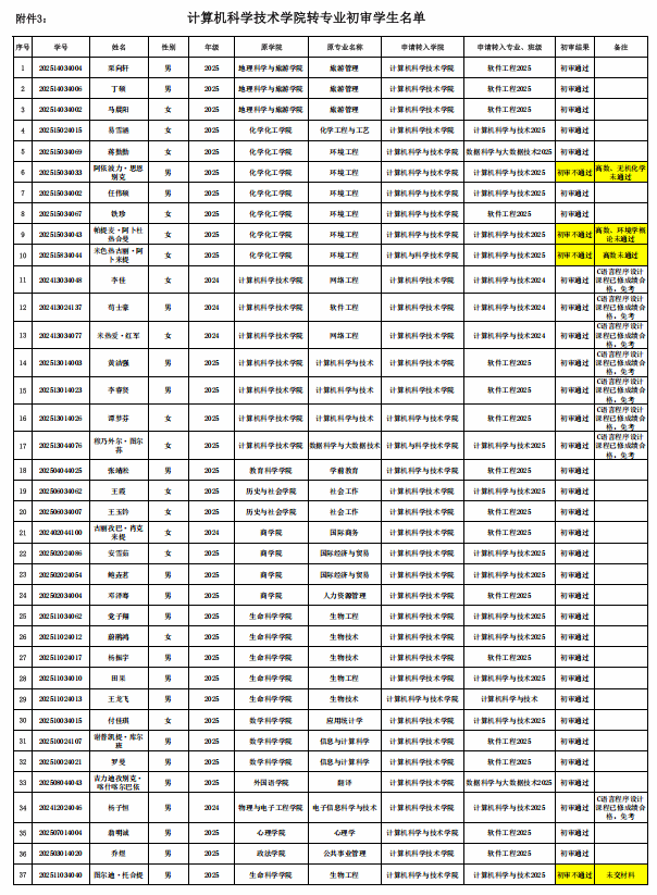 根据《搜球吧 本科生转专业实施方案》,经学生个人申请,搜球吧 审核,共有33名申请转专业学生通过初审,符合报名条件。现将结果进行公示: