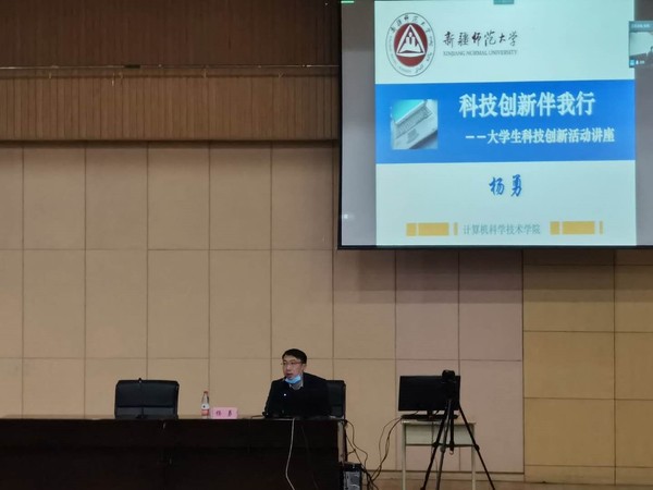 讲座伊始,杨勇老师简明扼要地指出了大学和高中在学习生活上的本质区别,并希望同学们可以尽快适应大学的学习生活。杨勇老师给同学们讲解了科技创新活动的意义:可以提高学生的综合素质,从而找到未来正确的学习方向;可以将学生学到的知识充分运用,以不断提高对所学知识的理解;可以培养大学生团结协作能力。杨勇老师还鼓励学生们要多思考,多实践,多尝试。杨勇老师希望同学们理解科技创新的目的和意义,将自己所学知识在将来应用到创新当中去,发掘自己的潜力,激发自己对于计算机学习的兴趣,充实地度过自己的大学四年。