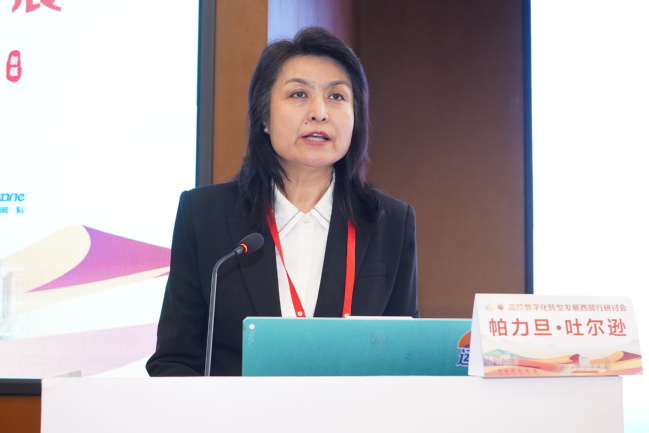 2024年10月11日至13日,由新疆维吾尔自治区教育厅、中国高等教育学会教育信息化分会指导,我院主办,运通会议展览服务有限公司承办的的“高校数字化转型发展西部行研讨会”在乌鲁木齐明园新时代会议中心召开。本次会议以“数字化驱动现代化”为主题,研讨数字化赋能高校高质量发展的新思路,交流高校数字化转型发展的新方法与新成果。来自全国各地高校的领导和从事高校教育数字化工作的专家学者、企业代表三百余人参加了会议。会议开幕式由校党委常委、副校长帕力旦·吐尔逊主持。