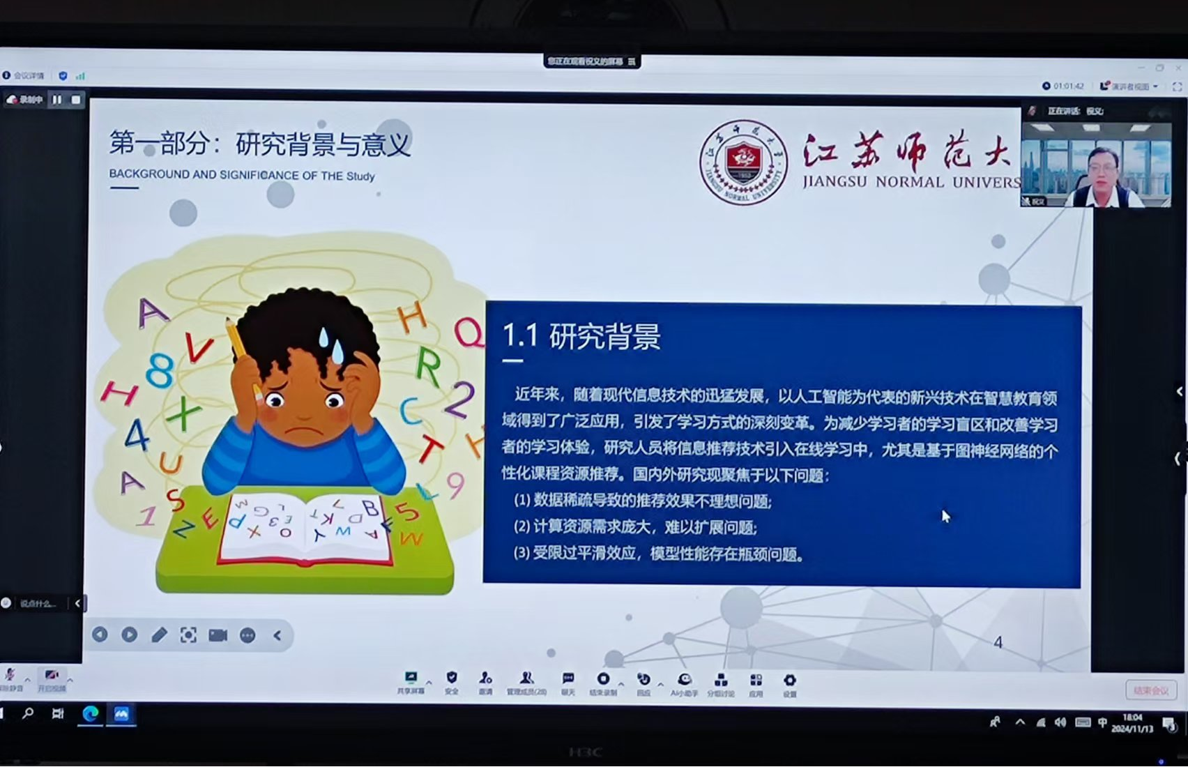 江苏师范大学智慧教育搜球吧 副院长、教授、江苏省“333”中青年科学技术带头人祝义老师作题为“基于图神经网络的个性化课程资源推荐方法研究”的讲座,详细阐述通过设计通用的个性化课程资源推荐系统框架PCRS,并基于该框架提出知识概念推荐模型MoocSage、PathSimSage、PprSage,一定程度上缓解了现有研究中的数据稀疏、模型规模难以扩展以及易引发过平滑效应等问题。