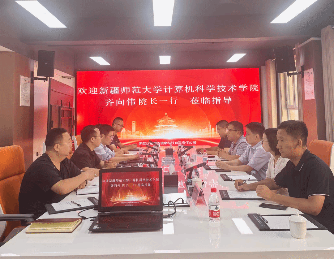 调研组一行前往伊犁丝路智谷信息科技有限公司等企业,了解企业在数智化方面取得的成果,并结合搜球吧 的科创特色,就校企合作、产学研深度融合、学生实习实践等方面进行了交流和探讨。